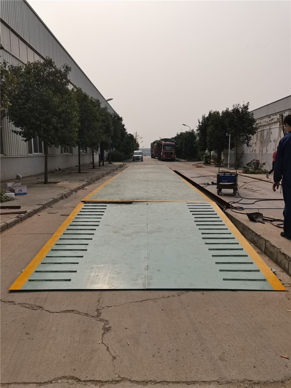 鄭州東湖木業尉氏分公司150噸鋼制跑道地磅施工案例