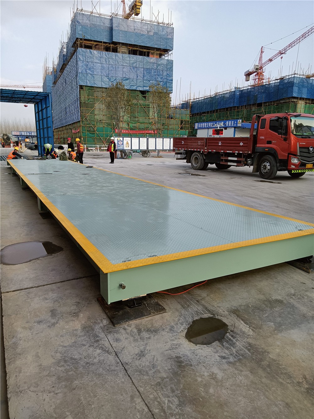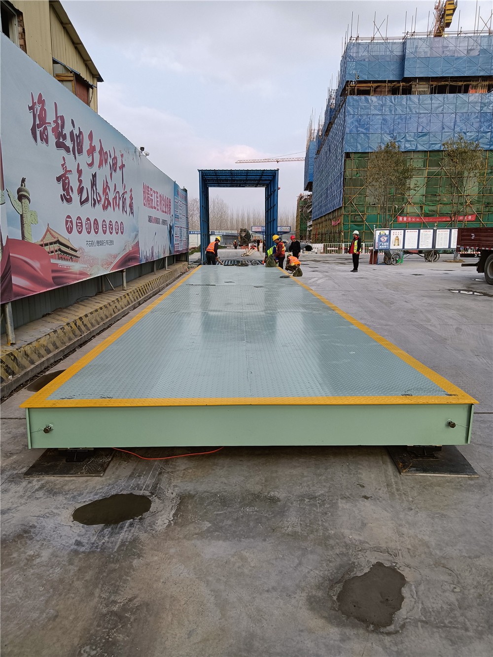 采購背景:南陽建工集團主營房屋建筑工程施工總承包壹級;地基與基礎工程承包叁級等。此次承建建業·尉州上院項目,為方便項目拌和站內大量建筑材料進出稱重計量, 訂購了中原恒瑞地磅廠3x16m定額100電子汽車衡,現汽車衡已安裝完成并投入使用。