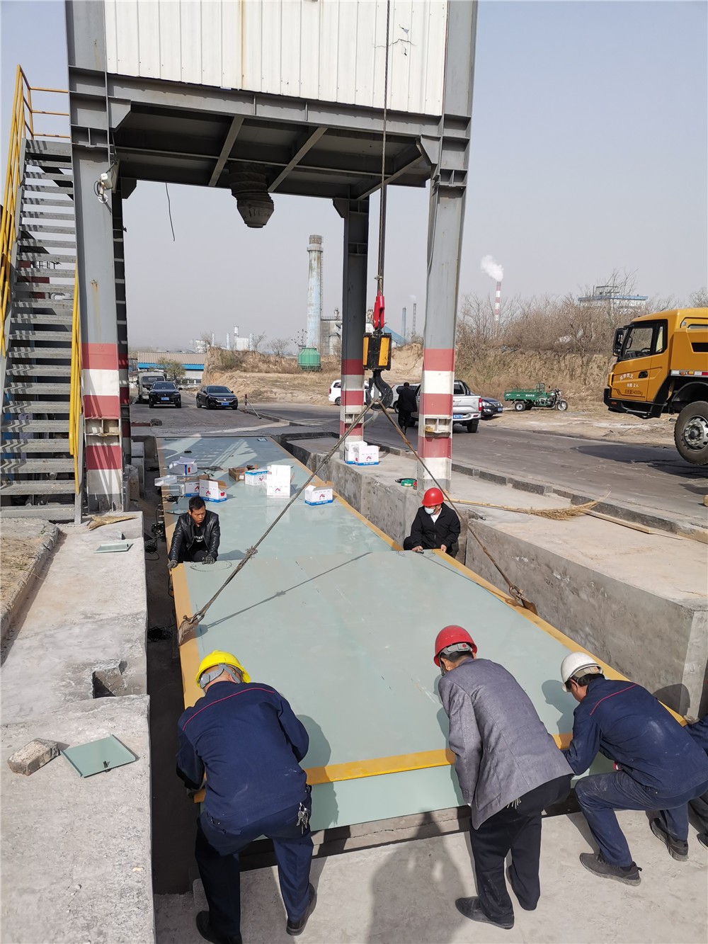 鞏義新世紀建工下料倉150噸地磅施工案例