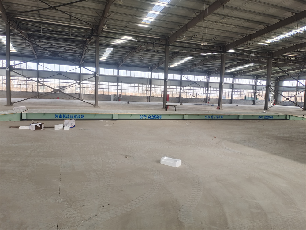 采購背景:河南省株豐農(nóng)業(yè)科技有限公司,主營農(nóng)業(yè)技術(shù)開發(fā)、技術(shù)咨詢、技術(shù)推廣、技術(shù)轉(zhuǎn)讓;農(nóng)作物種植;銷售:花卉、水果、蔬菜、化肥、農(nóng)業(yè)機(jī)械及配件、其他化工產(chǎn)品;生物肥料、水溶肥料、摻混肥料的生產(chǎn)及銷售等。廠區(qū)內(nèi)購進(jìn)原材料及銷售產(chǎn)品需要稱重計量,故訂購了一臺中原恒瑞地磅廠3x18m定額100噸數(shù)字汽車衡(汽車衡由4節(jié)3x4.5m秤臺搭接組成,配備了恒瑞HR-DZ-30T數(shù)字傳感器,恒瑞HR-D3+數(shù)字儀表,整磅數(shù)字信號傳輸,防作弊,穩(wěn)定性強(qiáng)),客戶計劃將汽車衡安裝于室內(nèi),同時為了使汽車衡盡快投入到生產(chǎn)使用中,加購了2臺3x3m鋼制跑道,現(xiàn)汽車衡已安裝完成并投入使用