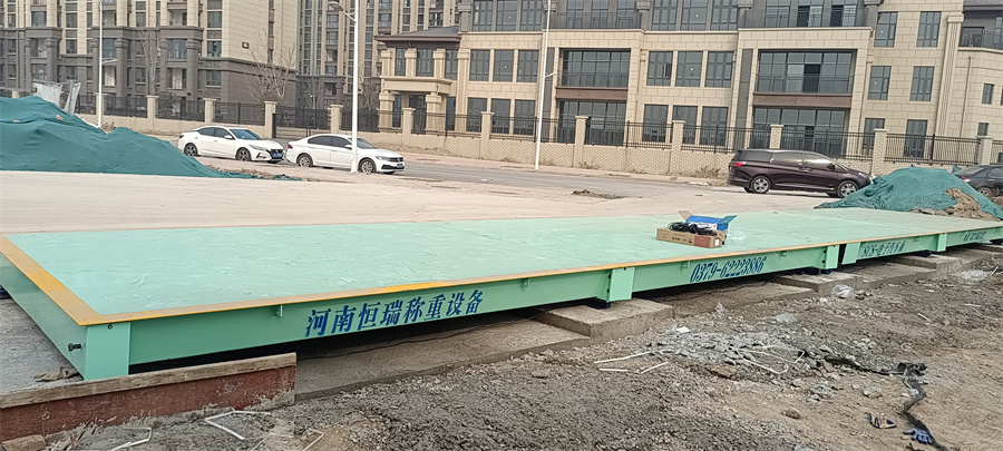 采背景購:濮陽市沐洋置業有限公司,是一家從事房地產開發經營等業務的公司。為方便建筑原材料和設備過磅計量,經多家對比聯系到了河南恒瑞地磅廠,磅廠技術人員為客戶設計了16米4節定額100噸的電子汽車衡。地磅采用10mm面板,300mmU型梁,HR-DZ-30T傳感器。精度高,性能穩定。目前地磅已投入使用。