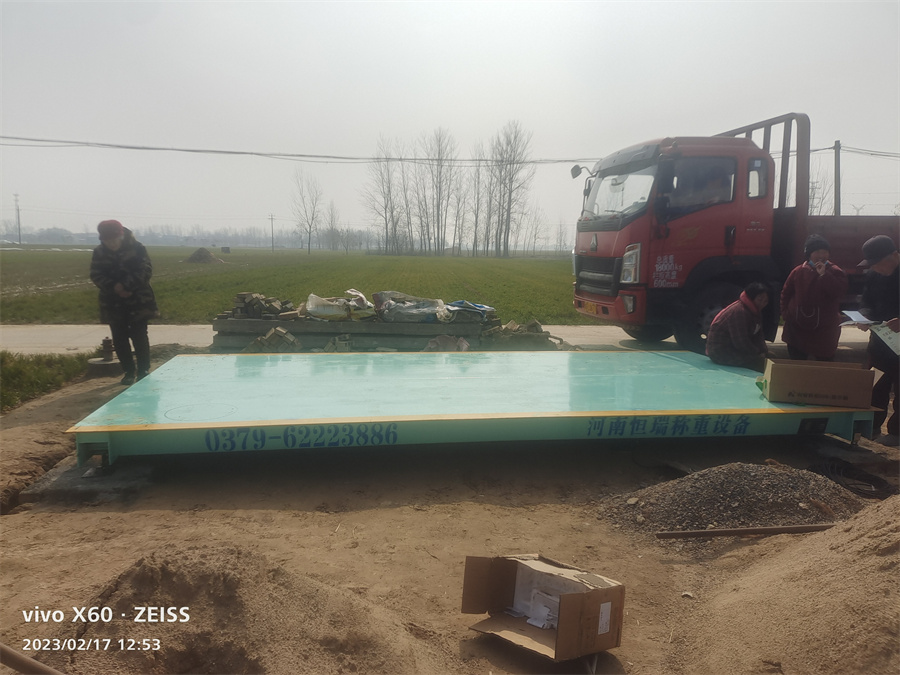采背景購:商丘市睢縣郭莊農業種植合作社,為了即將迎來的蔬菜成熟旺季,聯系訂購了河南恒瑞地磅廠2.5*5米定額20噸的地磅,地磅由一節2.5*5米組成,配備了柯力8t懸臂梁和XK3118K9儀表,現地磅已安裝完畢投入使用。