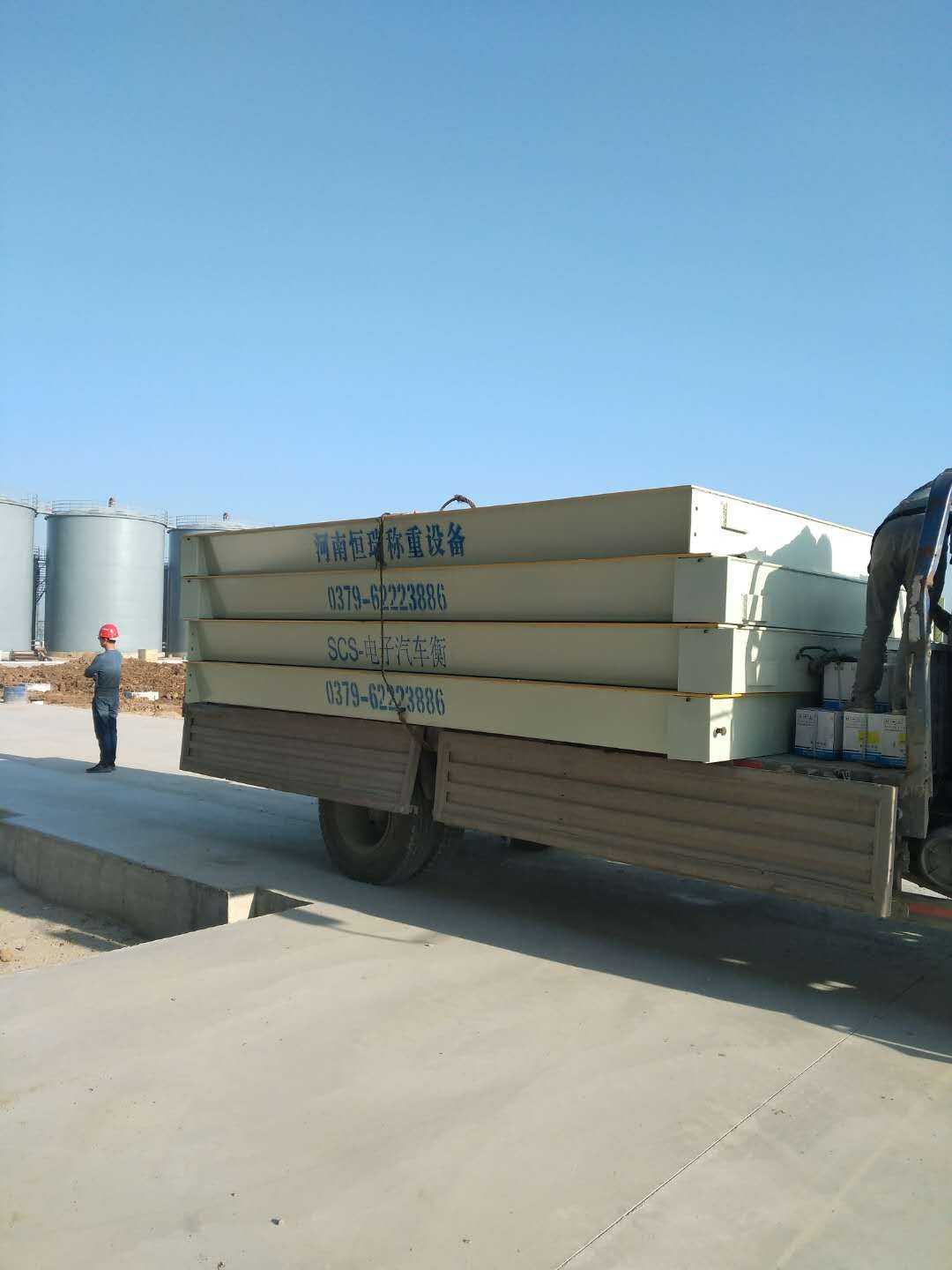 駐馬店平輿河南藍(lán)翎環(huán)科防水材料有限公司3x18m SCS-150t地磅案例